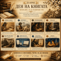 Денят на книгата на 23 април напомня, че книгите пазят знанието през вековете – от папируса и ръкописа до печатната и дигиталната книга.