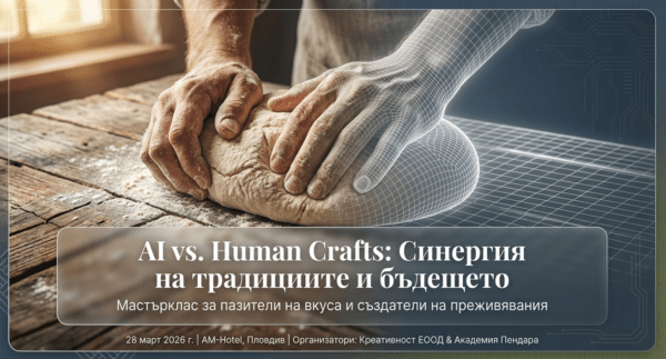 Точно тук идва голямата промяна. На 28 март 2026 г. в AM-Hotel, Пловдив, Креативност ЕООД и Академия Пендара обединяват сили, за да представят един различен мастърклас: „AI vs. Human Crafts: Синергия на традициите и бъдещето“.