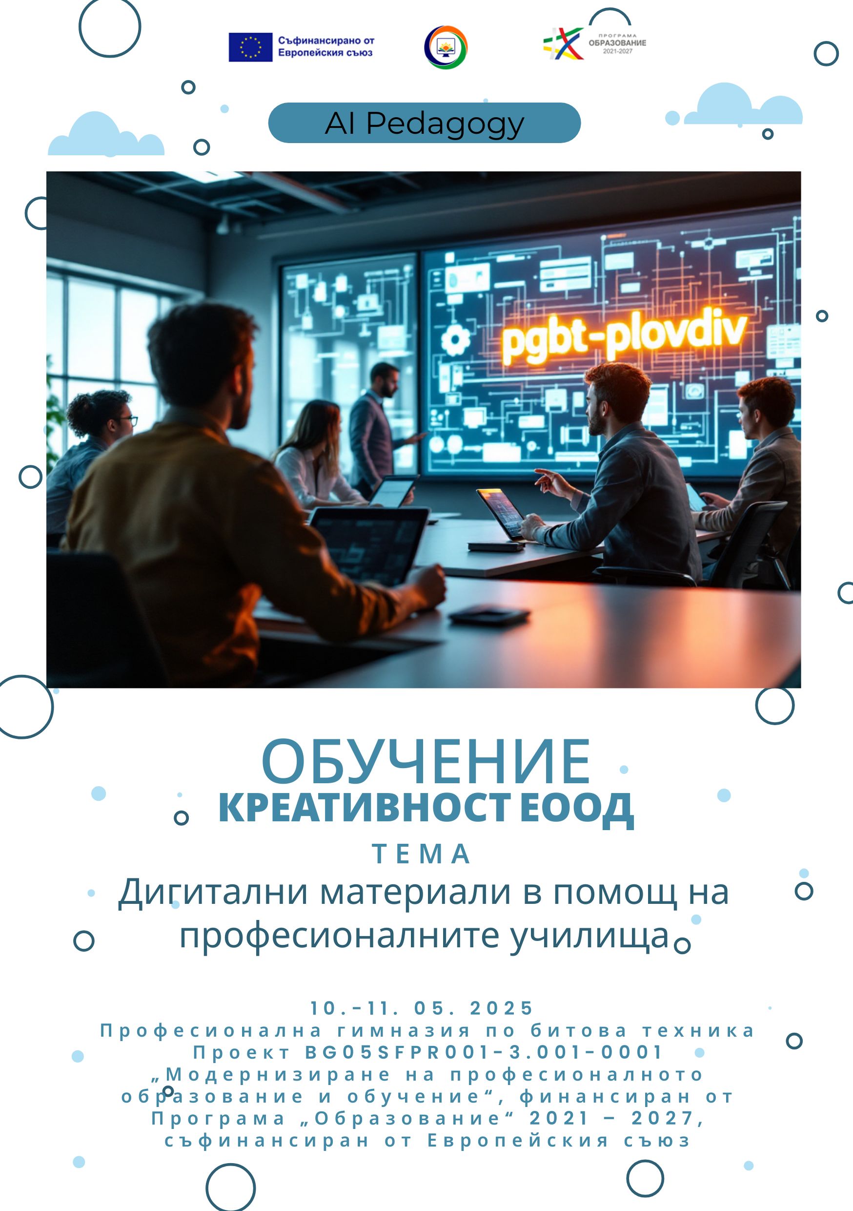 Защитен: Обучение: Дигитални материали в помощ на професионалните училища, 10-11. 05. 2025 г. Професионална гимназия по битова техника, Пловдив. „Модернизиране на професионалното образование и обучение“
