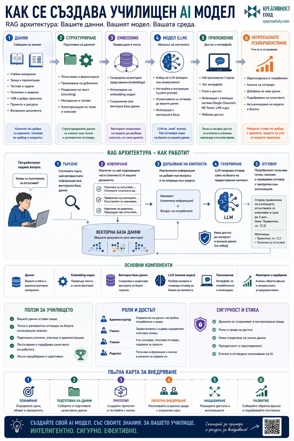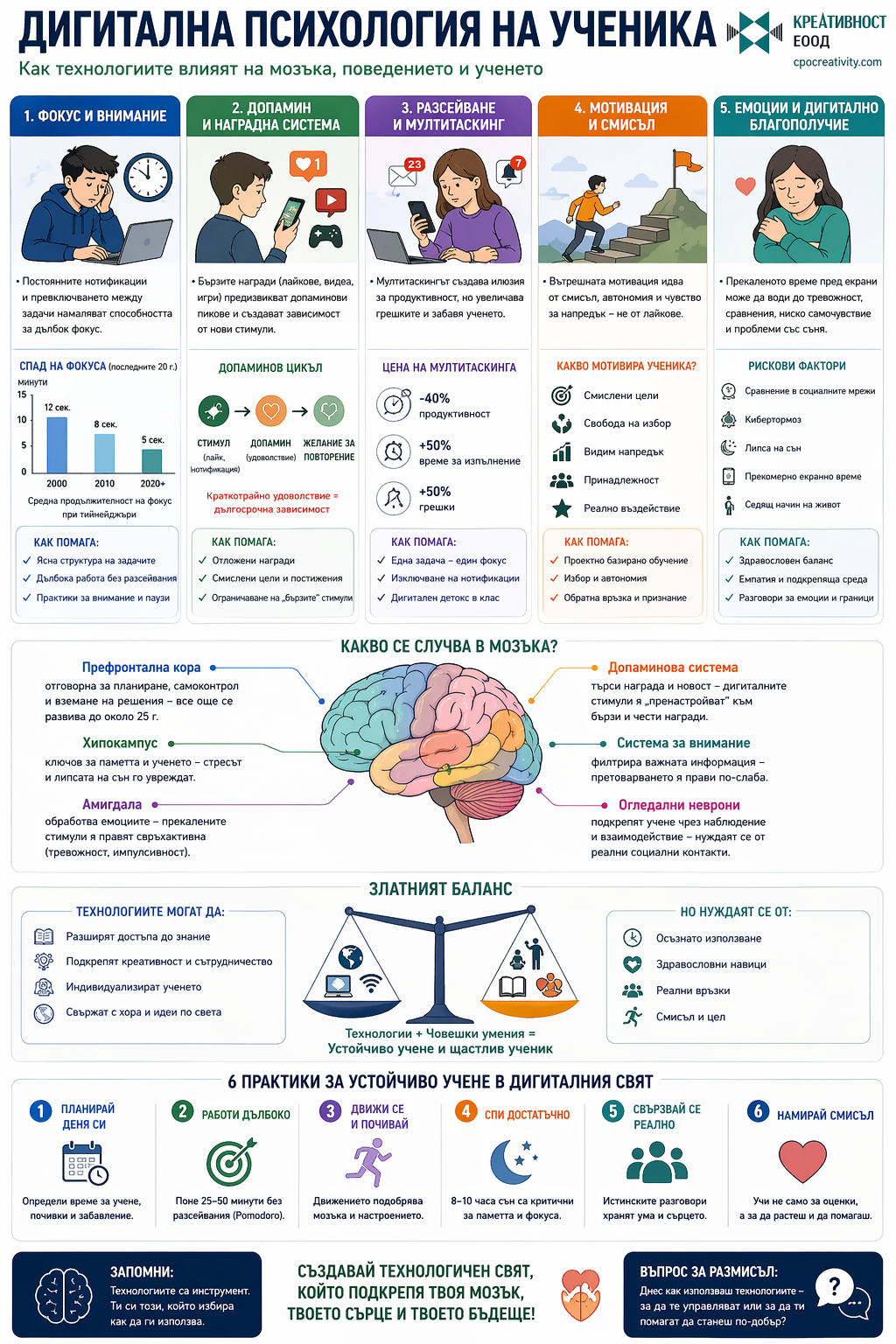Тук инфографиките играят критична роля. Те не са просто визуално представяне на информация, а инструмент за организация. Когато една тема е структурирана визуално, ученикът вижда връзките, а учителят получава рамка, в която може да работи ефективно.
